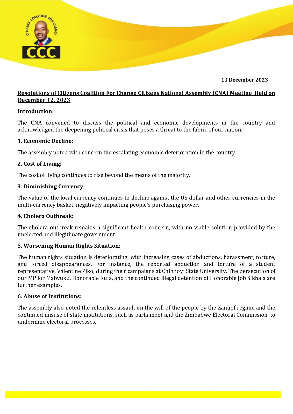 9) In 2024, under the leadership of President @nelsonchamisa, we stand poised to address Zimbabwe’s legitimacy crisis in alignment with the Citizens National Assembly discussions.